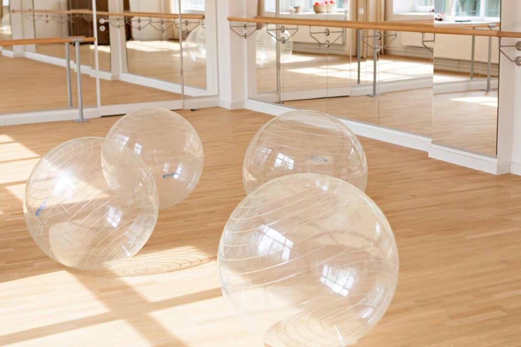 In dem lichtdurchfluteten Studio mit klarer, reduzierter Atmosphäre wirst Du in ruhiger Umgebung in die Übungen eingeführt und optimal auf Deine praktischen Prüfungen vorbereitet. Die modernen Trainingsflächen bieten Dir dafür ausreichend Platz für Bewegung, Konzentration und Austausch.
